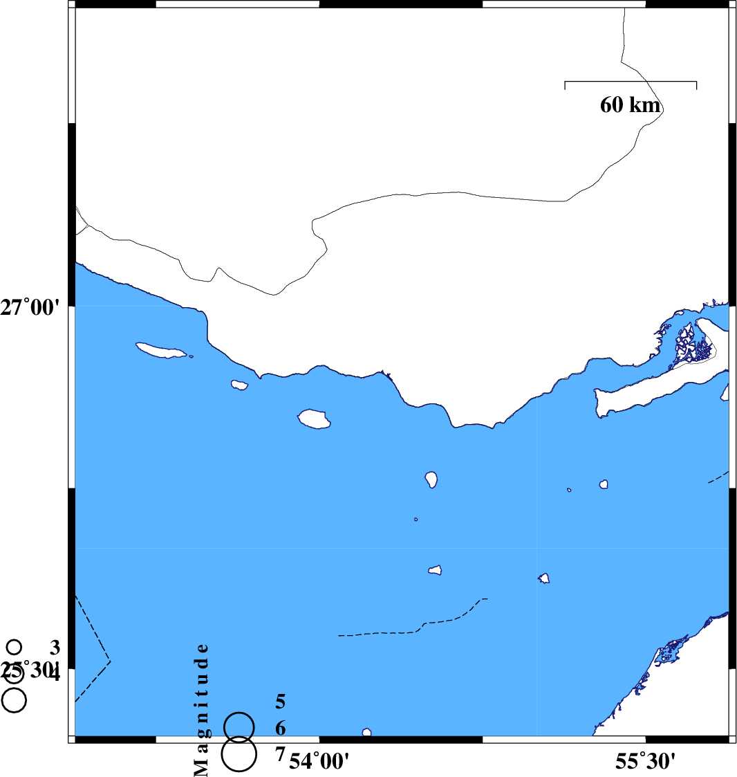 2011/02/18 | 17:13:26.5 | 20:43:26.5 | 26.71 | 54.46 | 14 | ML:3.6 | Hormozgan Province, 44 km North-West of Bandar-e lengeh | ||