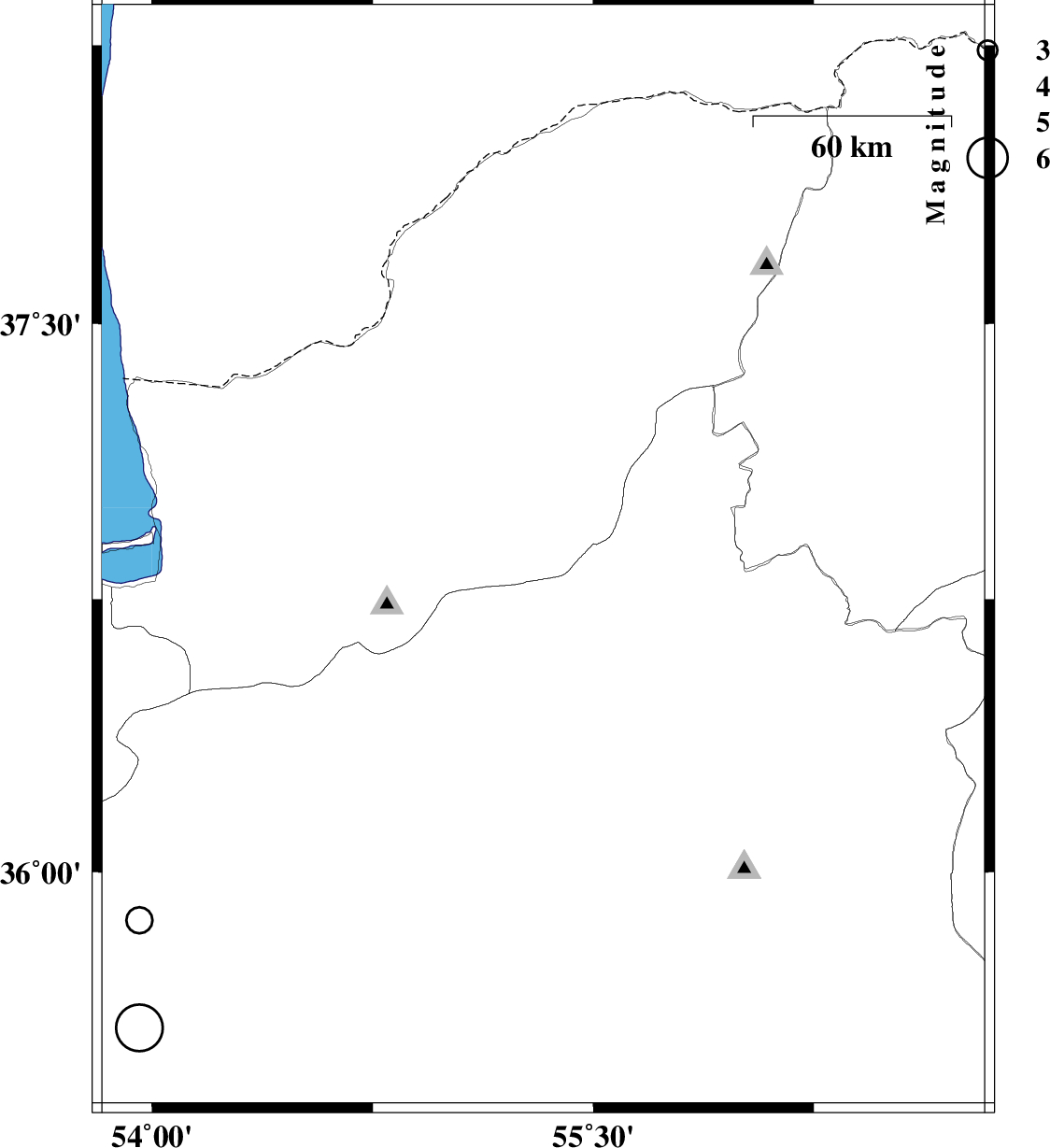 2011/02/07 | 21:35:39.3 | 01:05:39.3 | 37.32 | 54.77 | 41 | ML:3.6 | Golestan Province, 34 km West of Gonbad-e kavus |