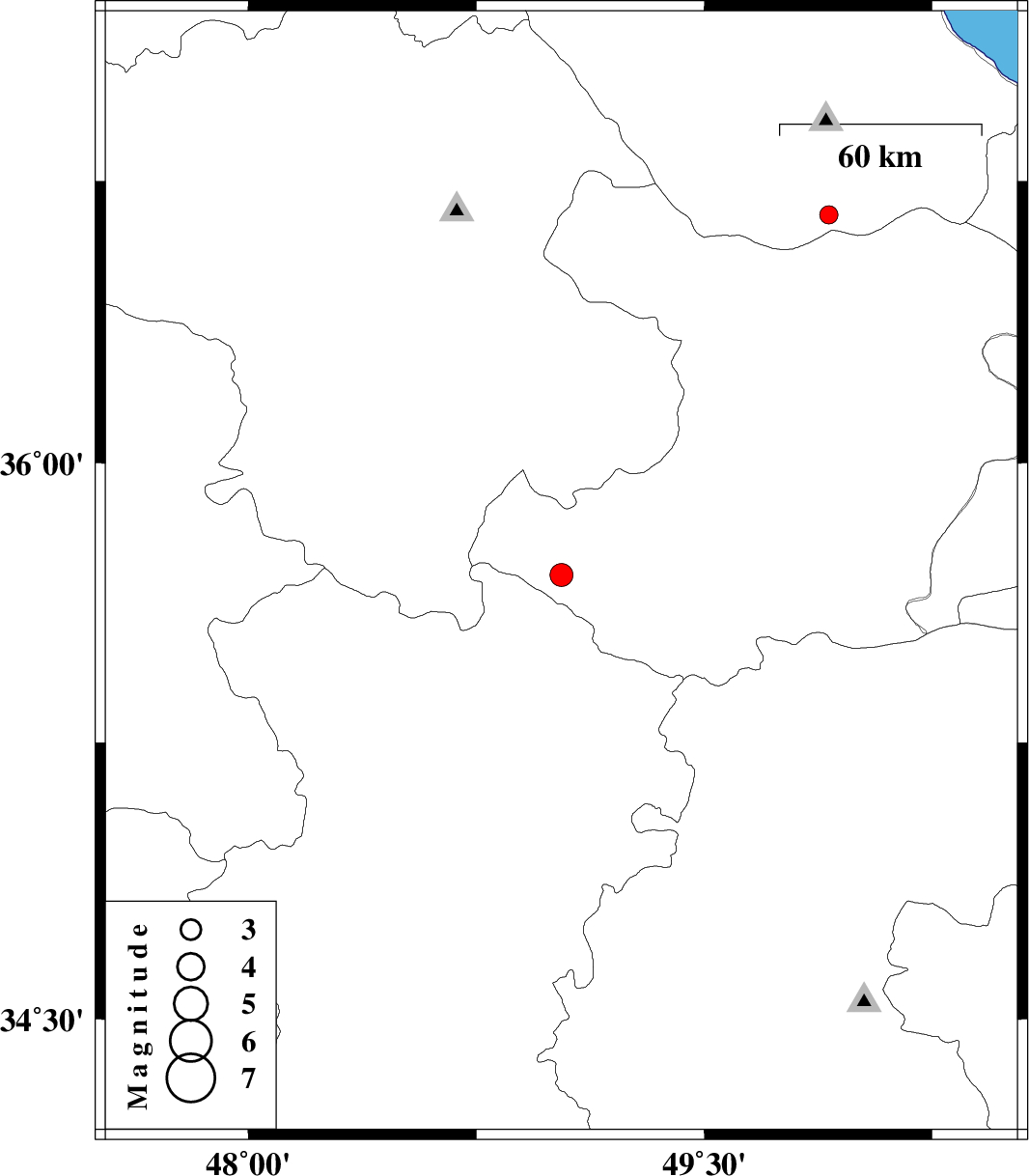 2011/02/22 | 22:01:45.6 | 01:31:45.6 | 36.66 | 49.91 | 14 | ML:2.7 | Gilan Province, 44 km North of Qazvin |