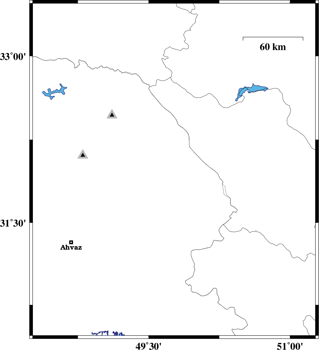 | 2011/02/24 | 06:16:51.2 | 09:46:51.2 | 32.21 | 48.92 | 26 | ML:3 | Khoozestan Province, 19 km North of Shushtar | ||