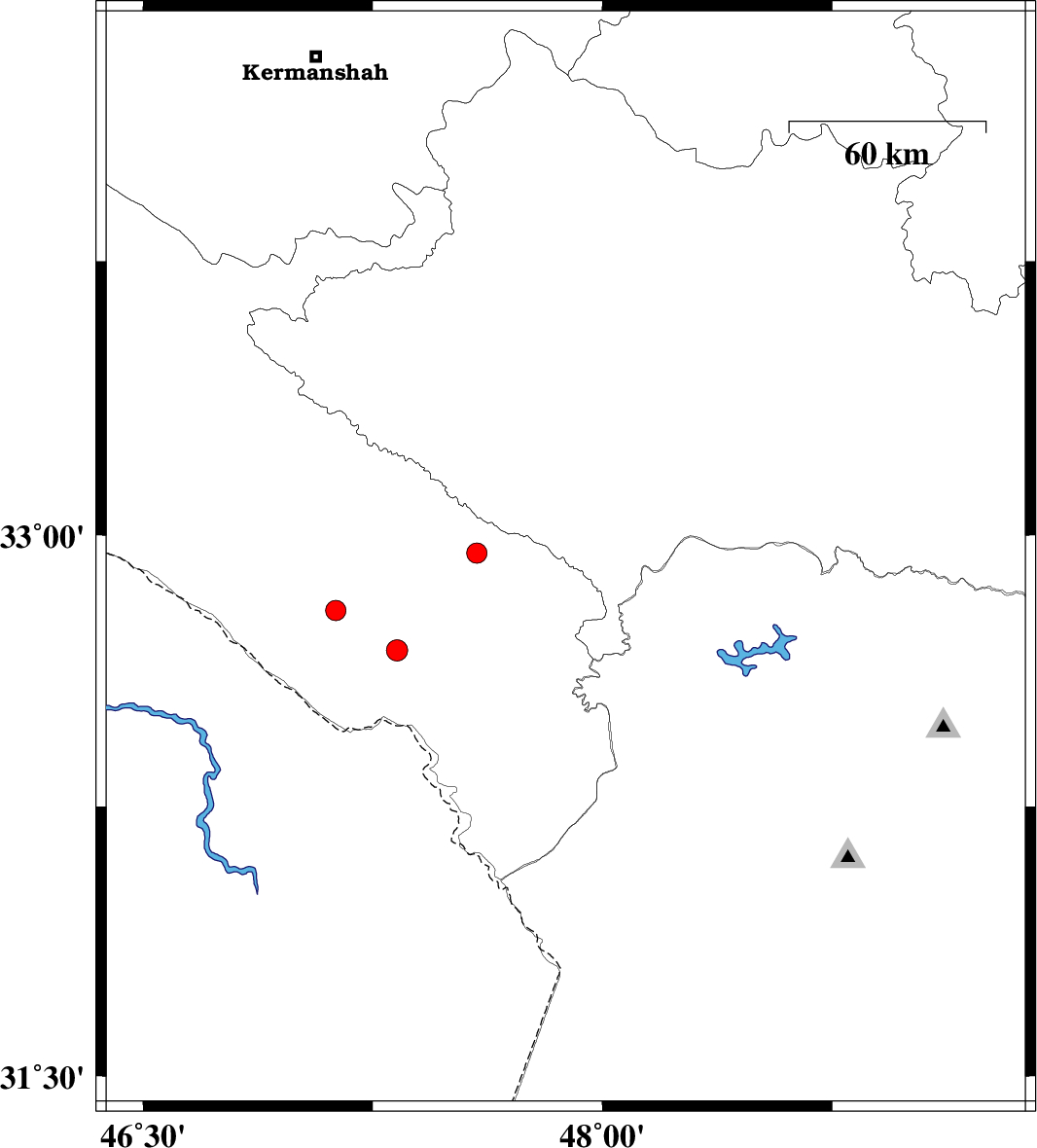 2011/02/25 | 15:04:30.4 | 18:34:30.4 | 34.05 | 47.49 | 14 | ML:4 | Lorestan Province, 25 km South of Harsin | ||