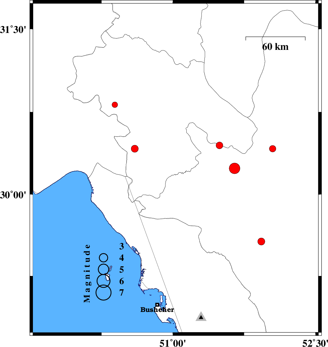 2011/02/06 | 03:37:36.4 | 07:07:36.4 | 30.6 | 49.93 | 14 | ML:2.7 | Khoozestan Province, 30 km West of Behbahan |