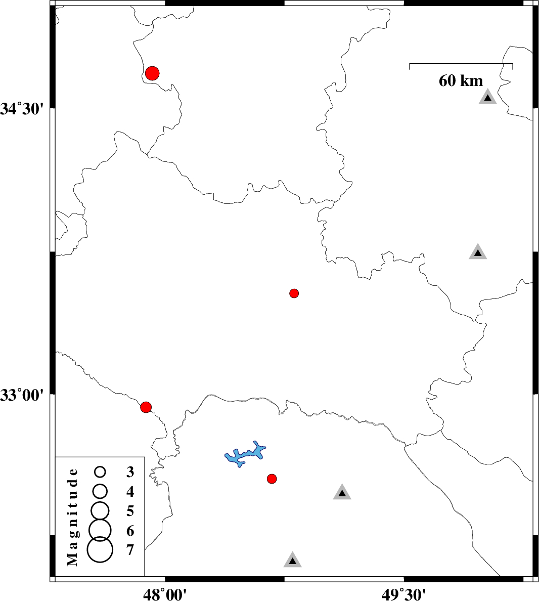 | 2011/02/27 | 13:18:25.7 | 16:48:25.7 | 34.68 | 47.92 | 42 | ML:4 | Hamedan Province, 21 km North of Kangavar |