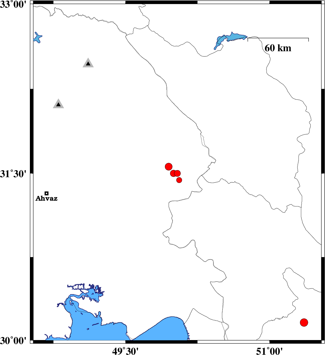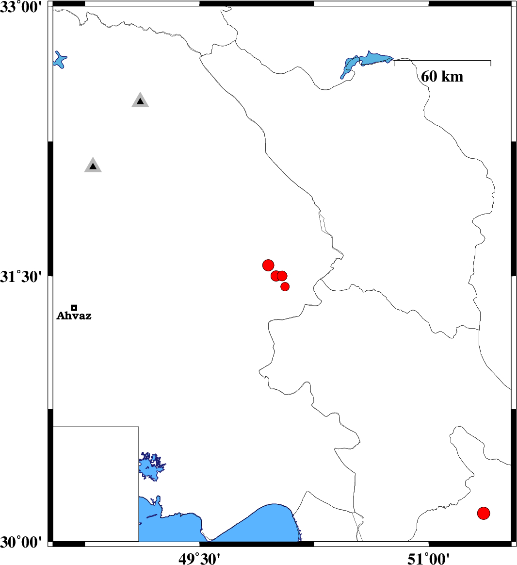 2011/03/18 05:39:31.9 09:09:31.9 31.550.0417 ML:2.9 Khoozestan Province, 13 km East of Bagh Malek