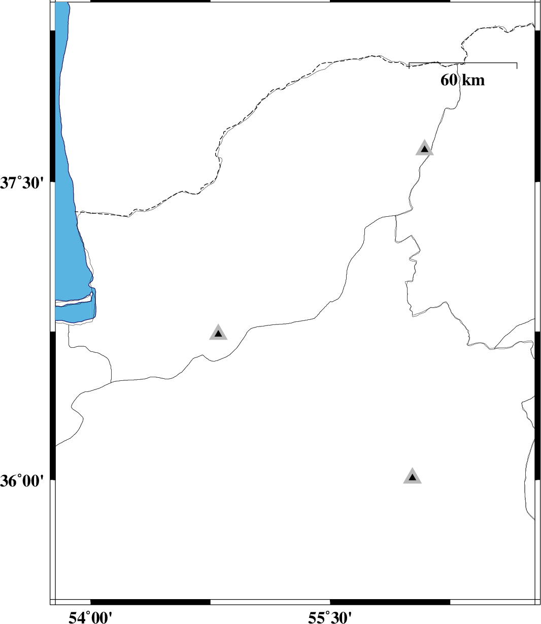| 2011/03/22 | 03:46:56.3 | 08:16:56.3 | 36.89 | 55.28 | 14 | ML:2.5 | Golestan Province, 18 km South-East of Ramian |