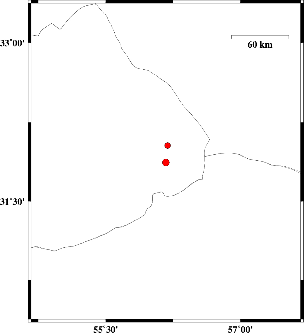 2011/03/29 | 05:00:40.0 | 09:30:40.0 | 32.03 | 56.19 | 16 | ML:3 | Yazd Province, 88 km North-East of Bafq |