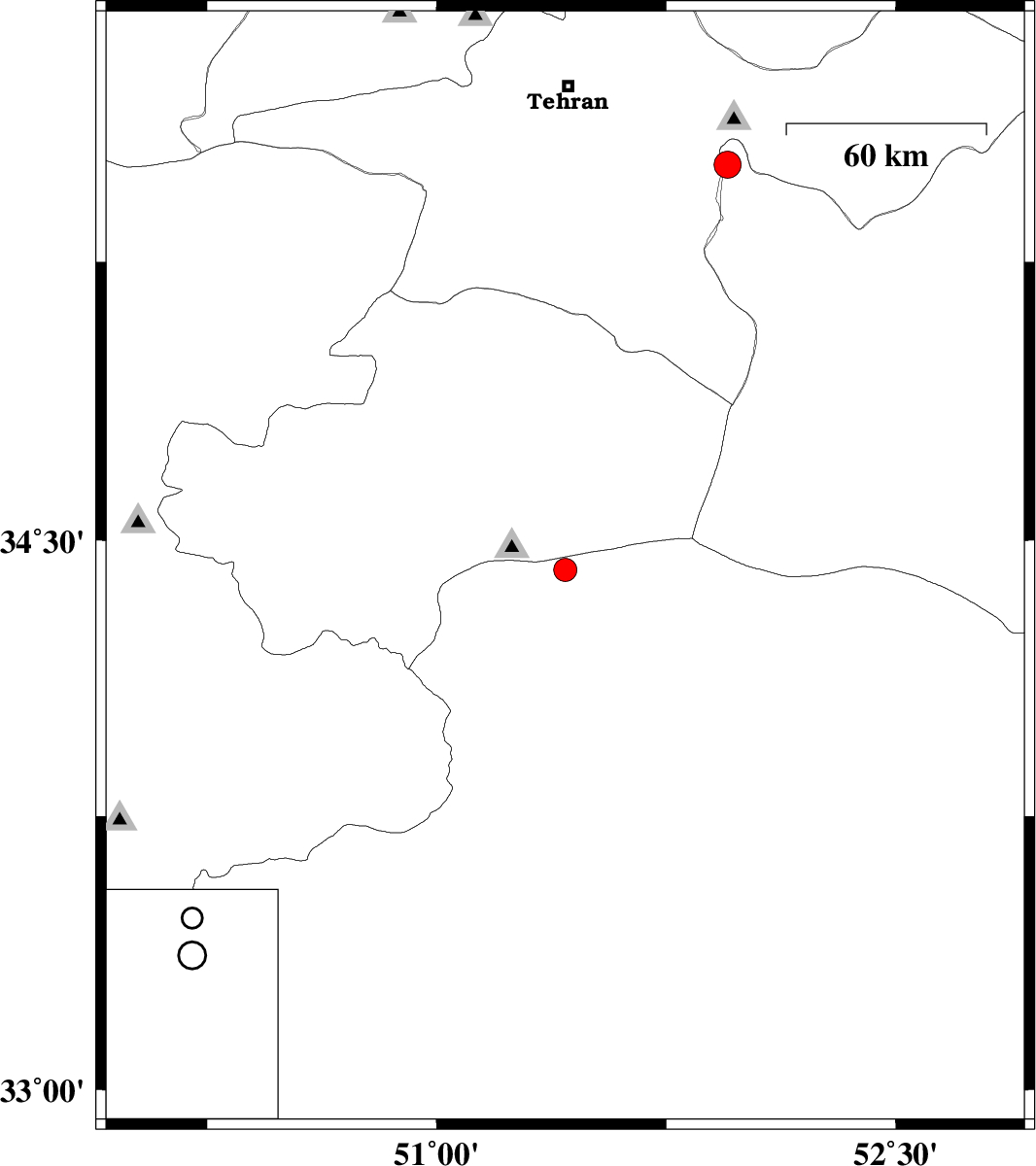 | 2011/04/06 | 12:12:26.4 | 16:42:26.4 | 35.51 | 51.95 | 14 | ML:3.9 | Semnan Province, 25 km East of Pakdasht |