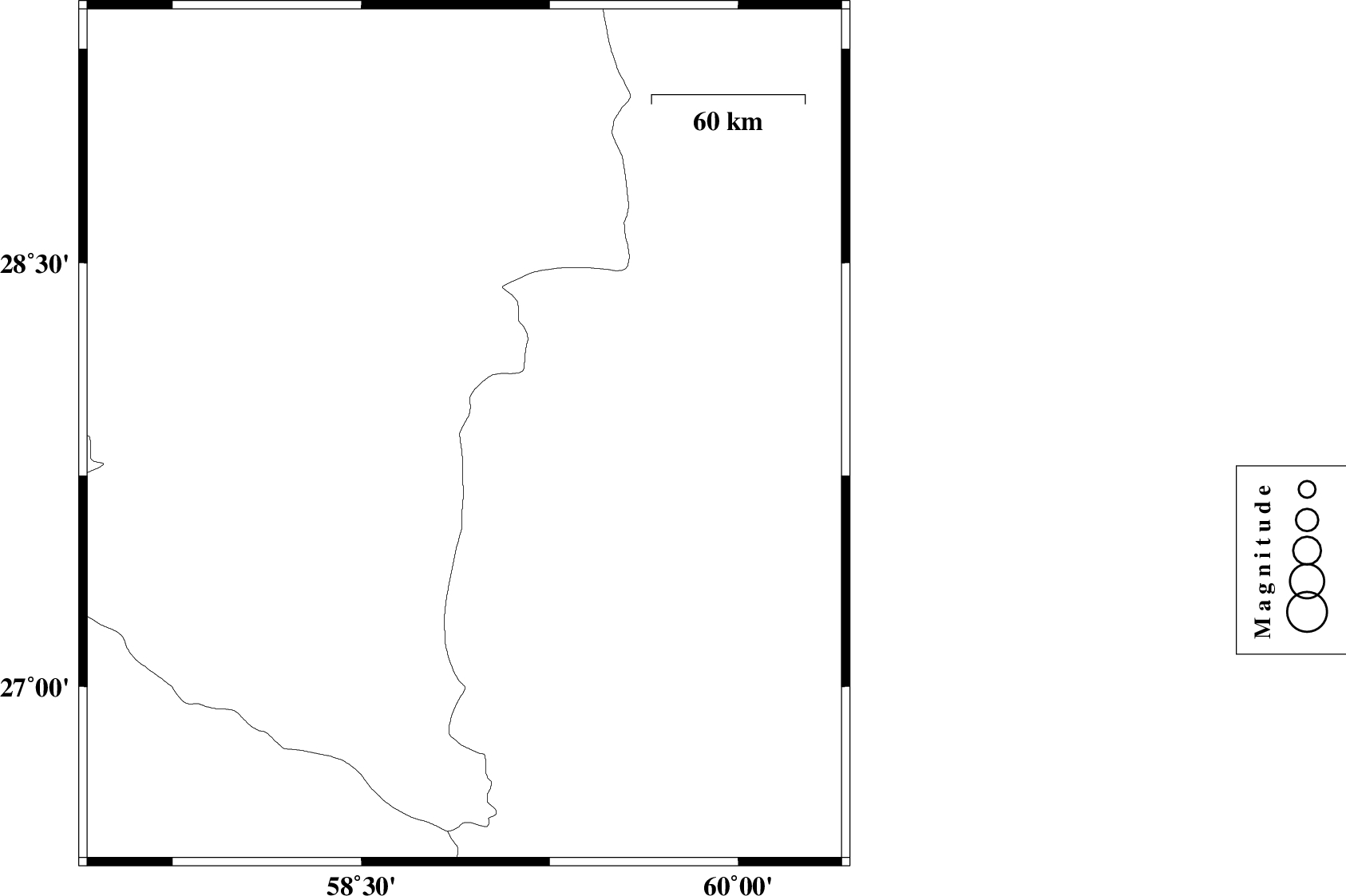 2011/04/04 | 09:17:31.7 | 13:47:31.7 | 28.35 | 58.84 | 15 | ML:3.3 | Kerman Province, 97 km South-East of Bam |