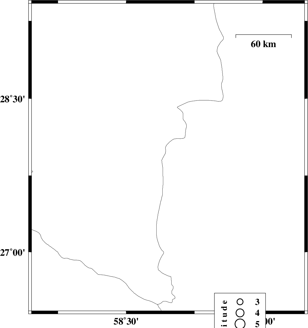 2011/04/04 | 09:17:31.7 | 13:47:31.7 | 28.35 | 58.84 | 15 | ML:3.3 | Kerman Province, 97 km South-East of Bam |