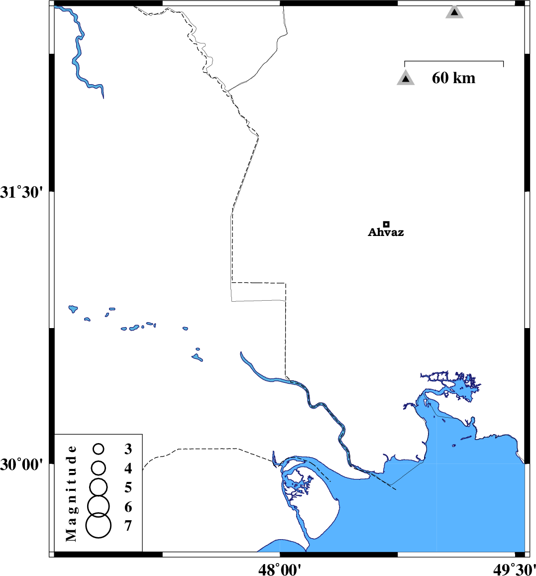 | 2011/04/18 | 16:41:49.0 | 21:11:49.0 | 31.01 | 48.06 | 14 | ML:3.4 | Khoozestan Province, 63 km South-West of Susangerd |