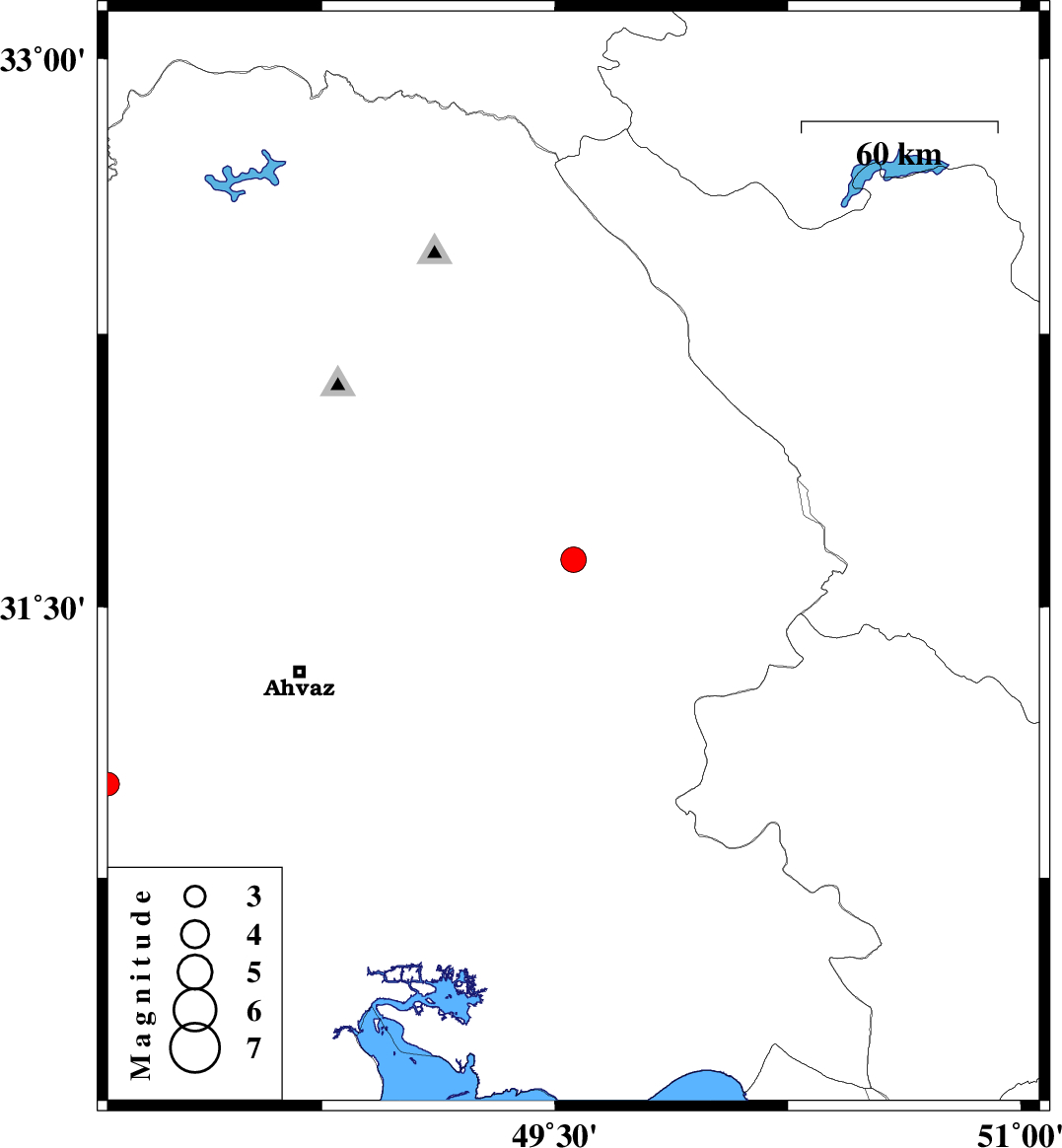 | 2011/04/19 | 15:43:13.6 | 20:13:13.6 | 31.63 | 49.56 | 14 | ML:3.7 | Khoozestan Province, 39 km North of Ramhormoz | ||