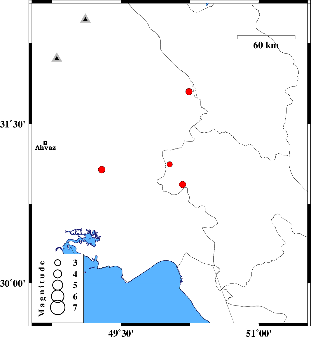| 2011/04/27 | 20:59:46.3 | 01:29:46.3 | 30.93 | 50.17 | 14 | ML:3.3 | Kohkiluieh va boyerahmad Province, 38 km North of Behbahan | ||