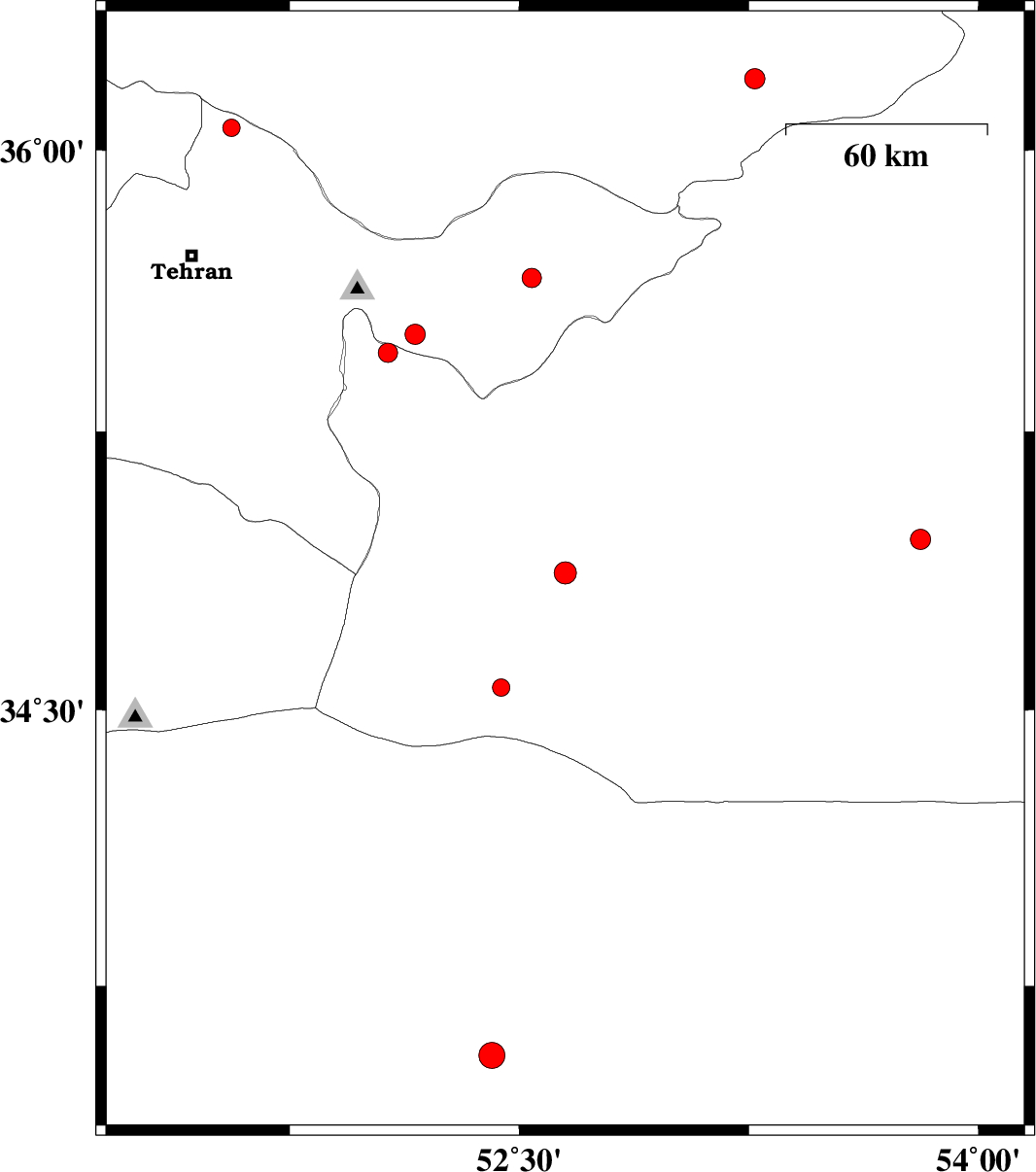 | 2011/05/08 | 04:02:58.5 | 08:32:58.5 | 34.87 | 52.65 | 15 | ML:3.2 | Semnan Province, 49 km South-East of Garmsar | ||