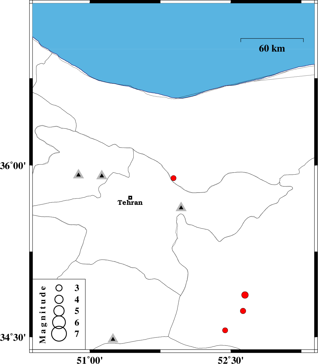 2011/05/15 | 11:22:31.3 | 15:52:31.3 | 35.89 | 51.89 | 33 | ML:2.5 | Mazandaran Province, 26 km North-West of Damavand | ||