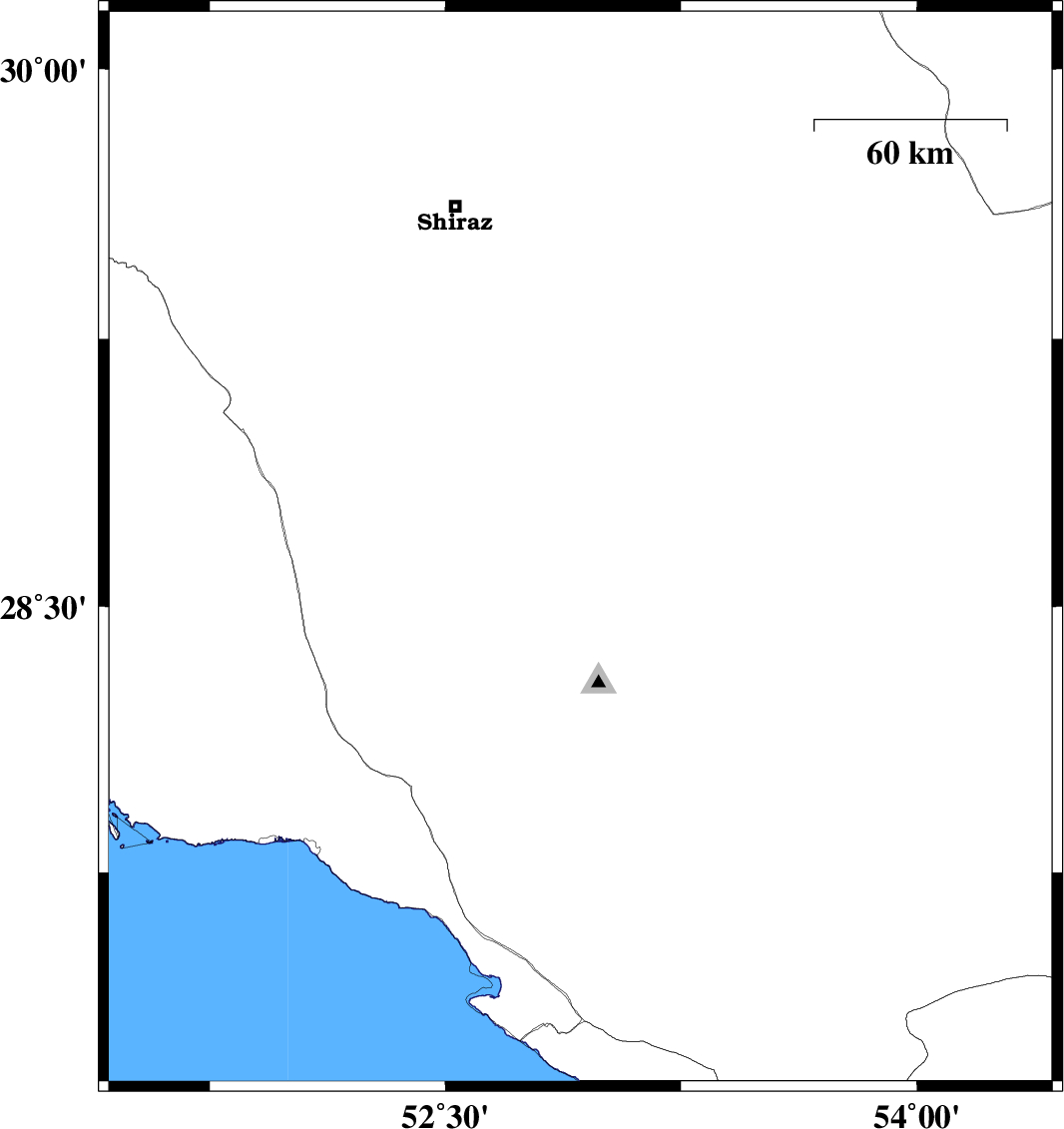 2011/05/07 | 09:44:51.4 | 14:14:51.4 | 28.35 | 53.97 | 46 | ML:3.1 | Fars Province, 44 km South-East of Jahrom | ||