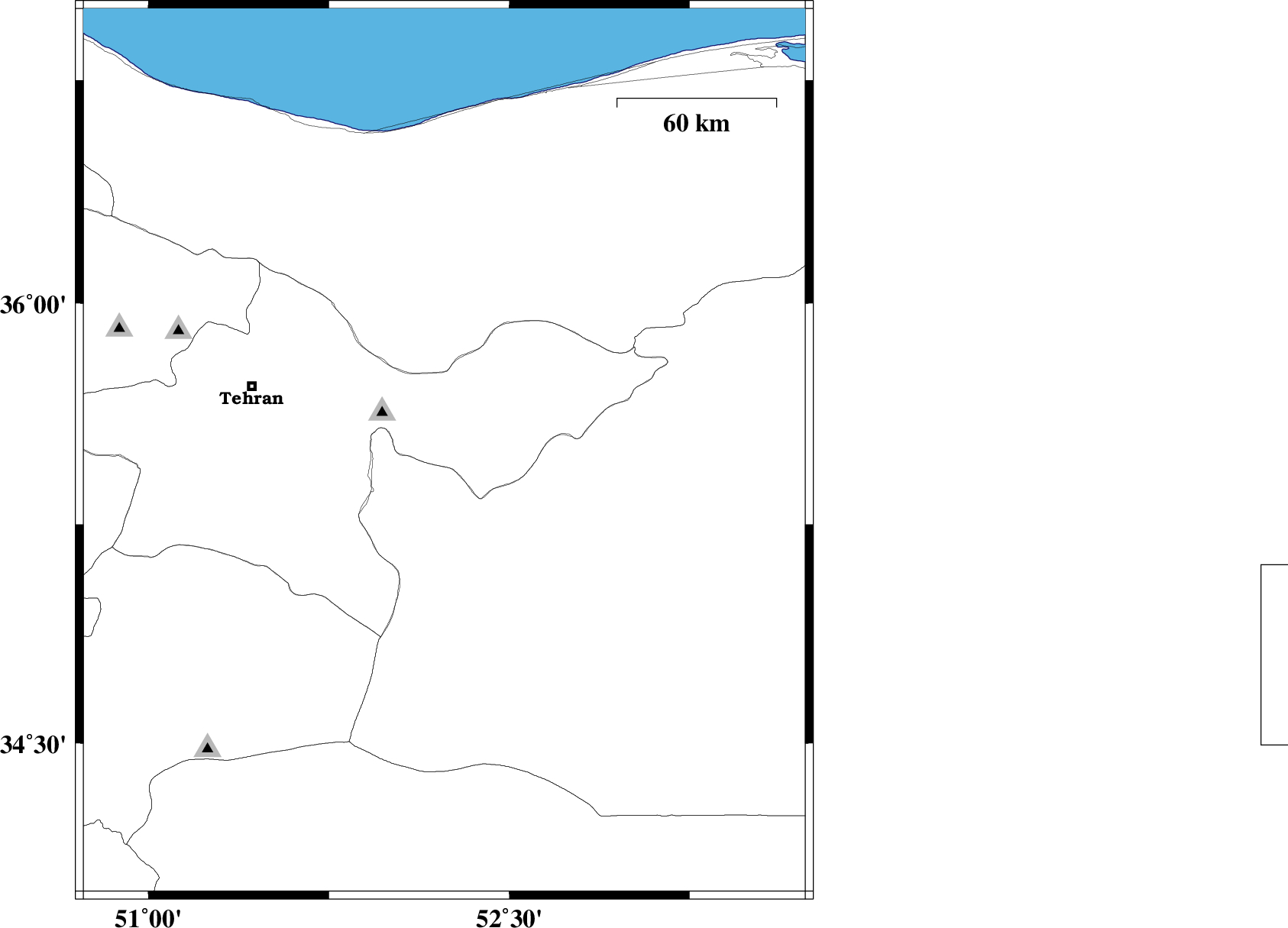 2011/05/15 | 11:22:31.3 | 15:52:31.3 | 35.89 | 51.89 | 33 | ML:2.5 | Mazandaran Province, 26 km North-West of Damavand | ||