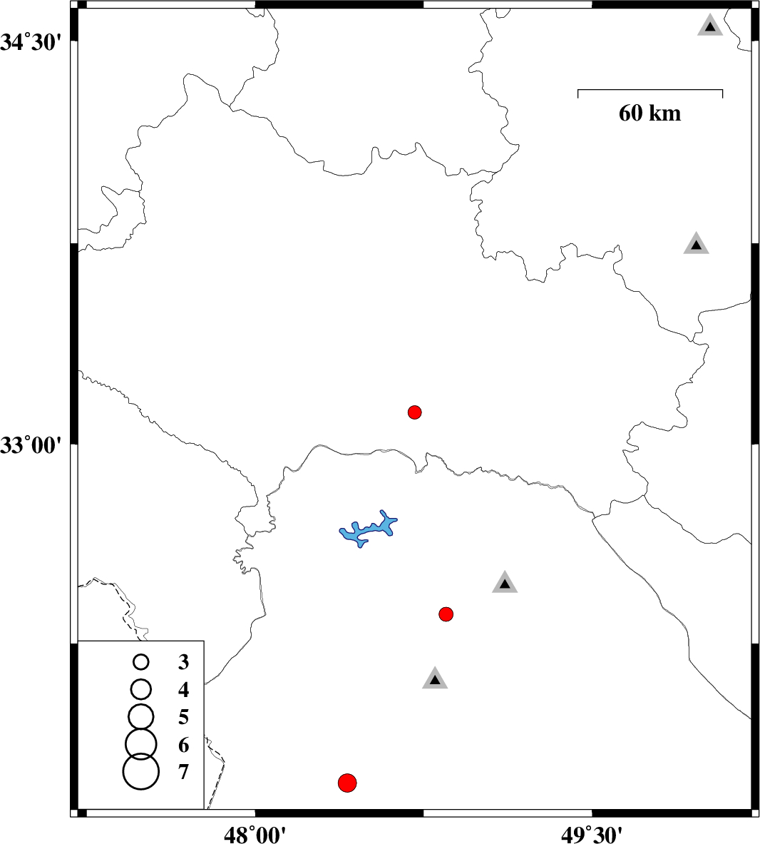2011/05/26 | 01:02:55.2 | 05:32:55.2 | 33.12 | 48.71 | 14 | ML:2.7 | Lorestan Province, 51 km South-East of Khorramabad | ||