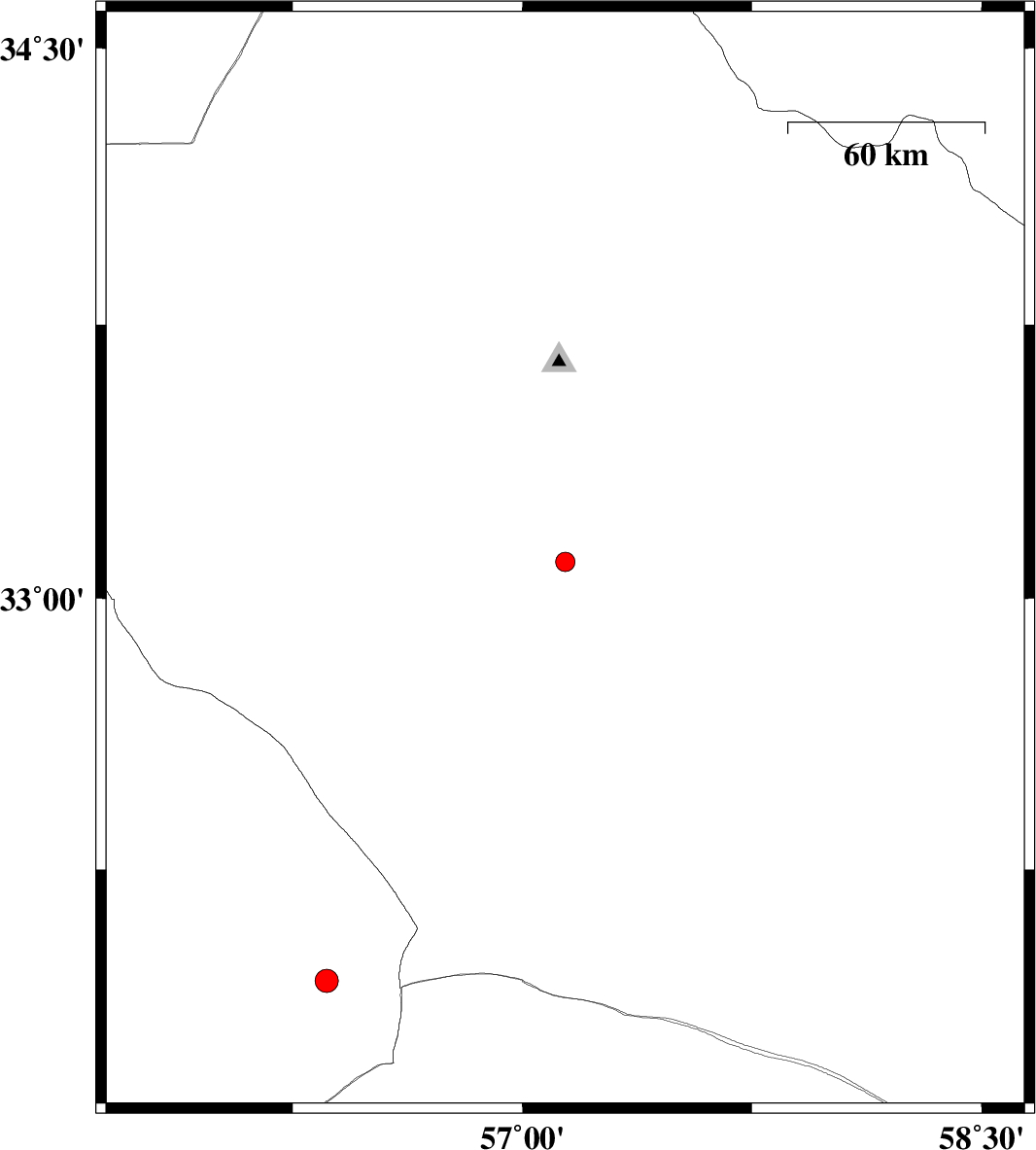 2011/06/11 | 02:49:18.5 | 07:19:18.5 | 33.1 | 57.14 | 14 | ML:2.8 | Yazd Province, 59 km South-East of Tabas | ||