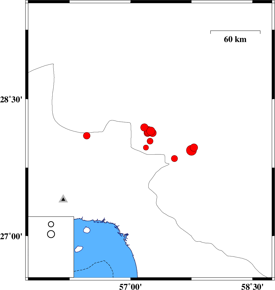 2011/06/15 05:09:00.9 09:39:00.9 27.9757.1945 ML:3 Kerman Province, 49 km West of Kahnuj
