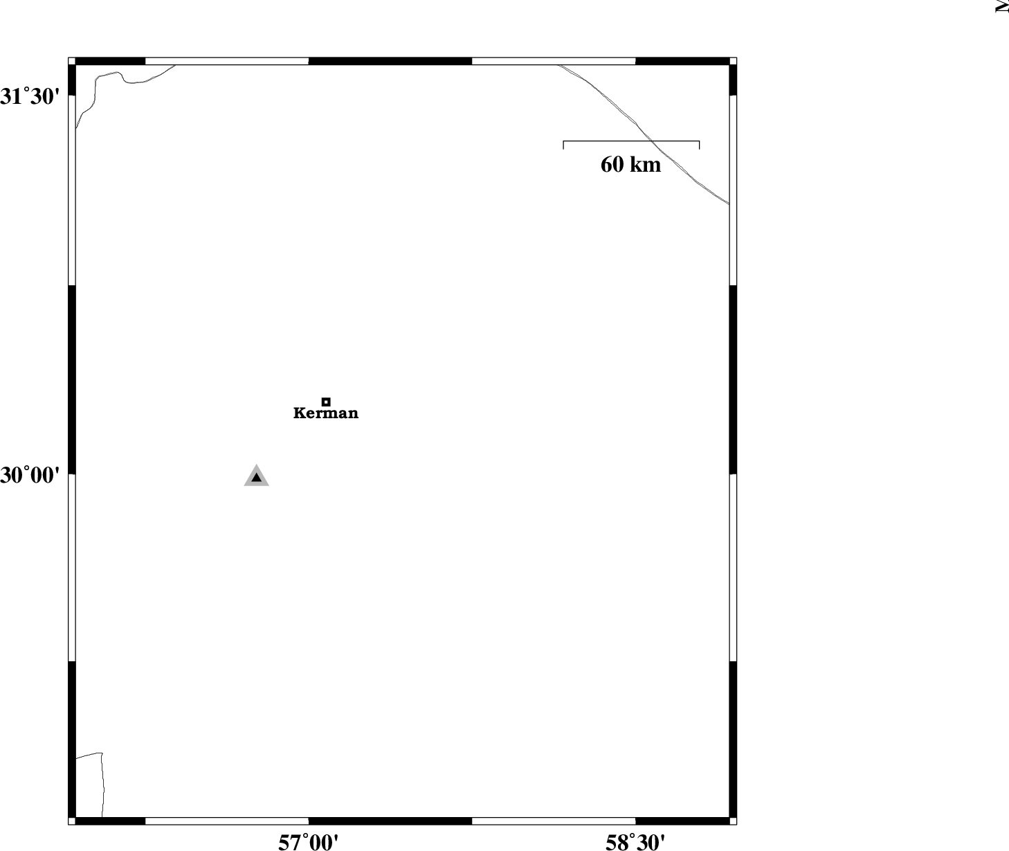 2011/06/26 | 09:50:28.0 | 14:20:28.0 | 29.79 | 57.52 | 9 | ML:3.3 | Kerman Province, 70 km South-East of Kerman | ||