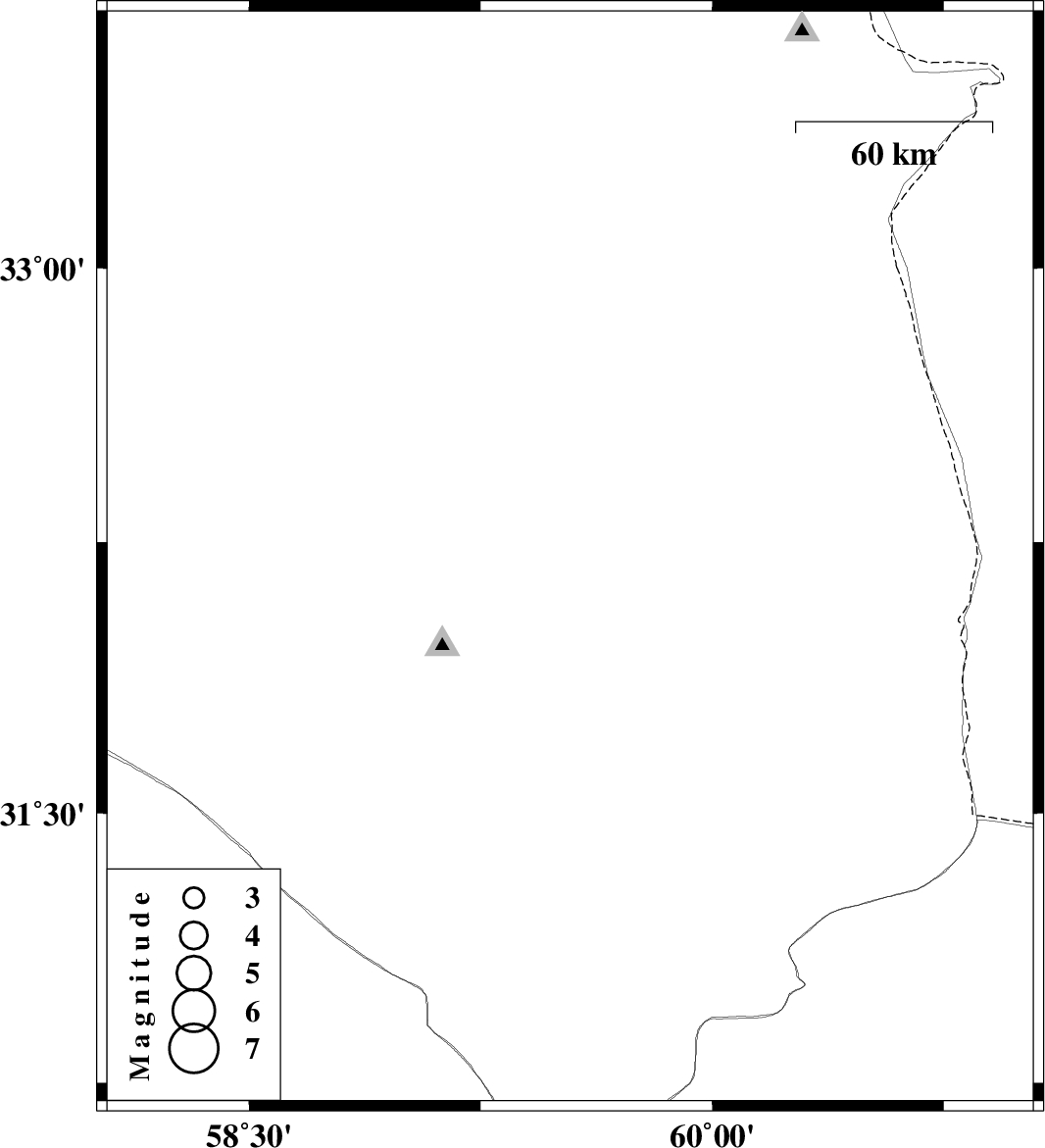 2011/06/27 | 11:12:29.8 | 15:42:29.8 | 32.2 | 59.54 | 16 | ML:3 | Khorasan(south) Province, 53 km South-West of Sarbisheh |