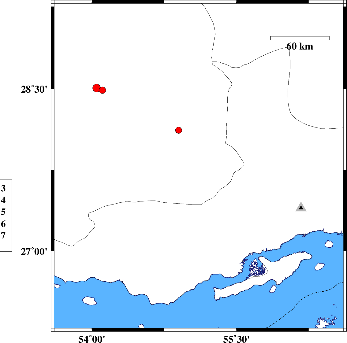 2011/06/29 10:20:51.4 14:50:51.4 27.7855.1115 ML:3.1 Fars Province, 76 km North-East of Lar