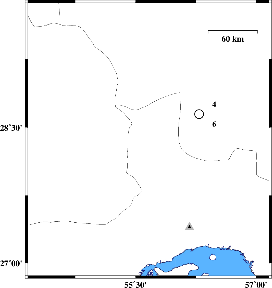 2011/07/10 | 06:20:01.9 | 10:50:01.9 | 28.36 | 55.66 | 18 | ML:3.5 | Hormozgan Province, 24 km West of Hajiabad |