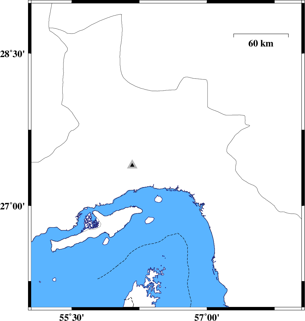 2011/07/25 | 23:26:09.1 | 03:56:09.1 | 27.49 | 56.55 | 14 | ML:3.2 | Hormozgan Province, 43 km North-East of Bandar-e abbas | ||