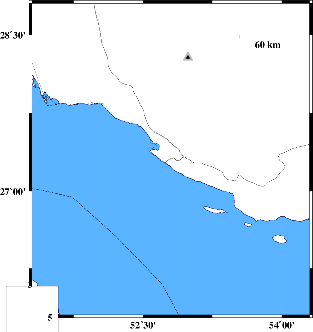 2011/07/08 | 13:10:55.6 | 17:40:55.6 | 27.03 | 53.47 | 37 | ML:3.4 | Hormozgan Province, 45 km South-East of Lamerd | ||