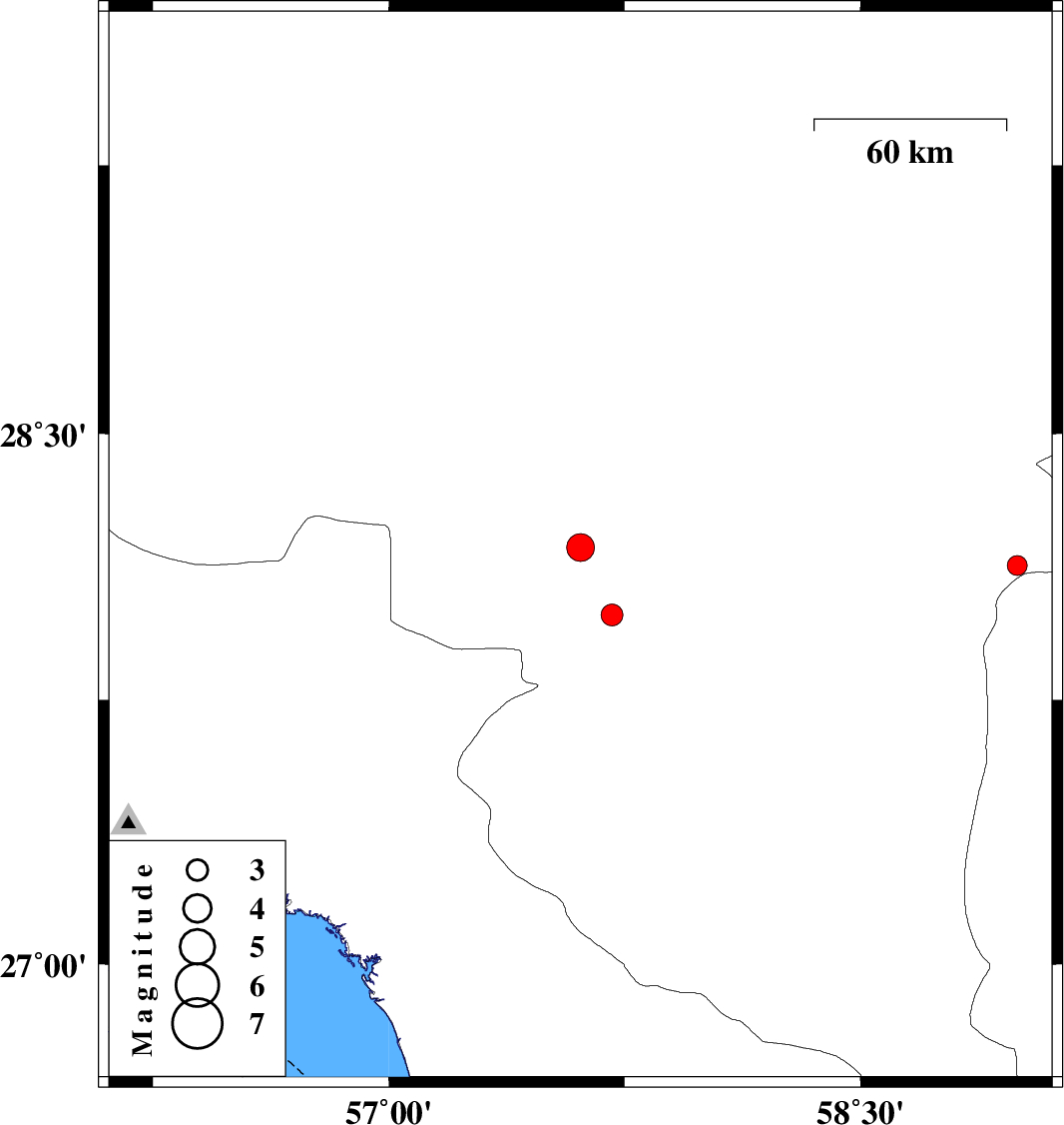 | 2011/08/07 | 15:03:37.9 | 19:33:37.9 | 27.99 | 57.71 | 14 | ML:3.1 | Kerman Province, 4 km Kahnuj |