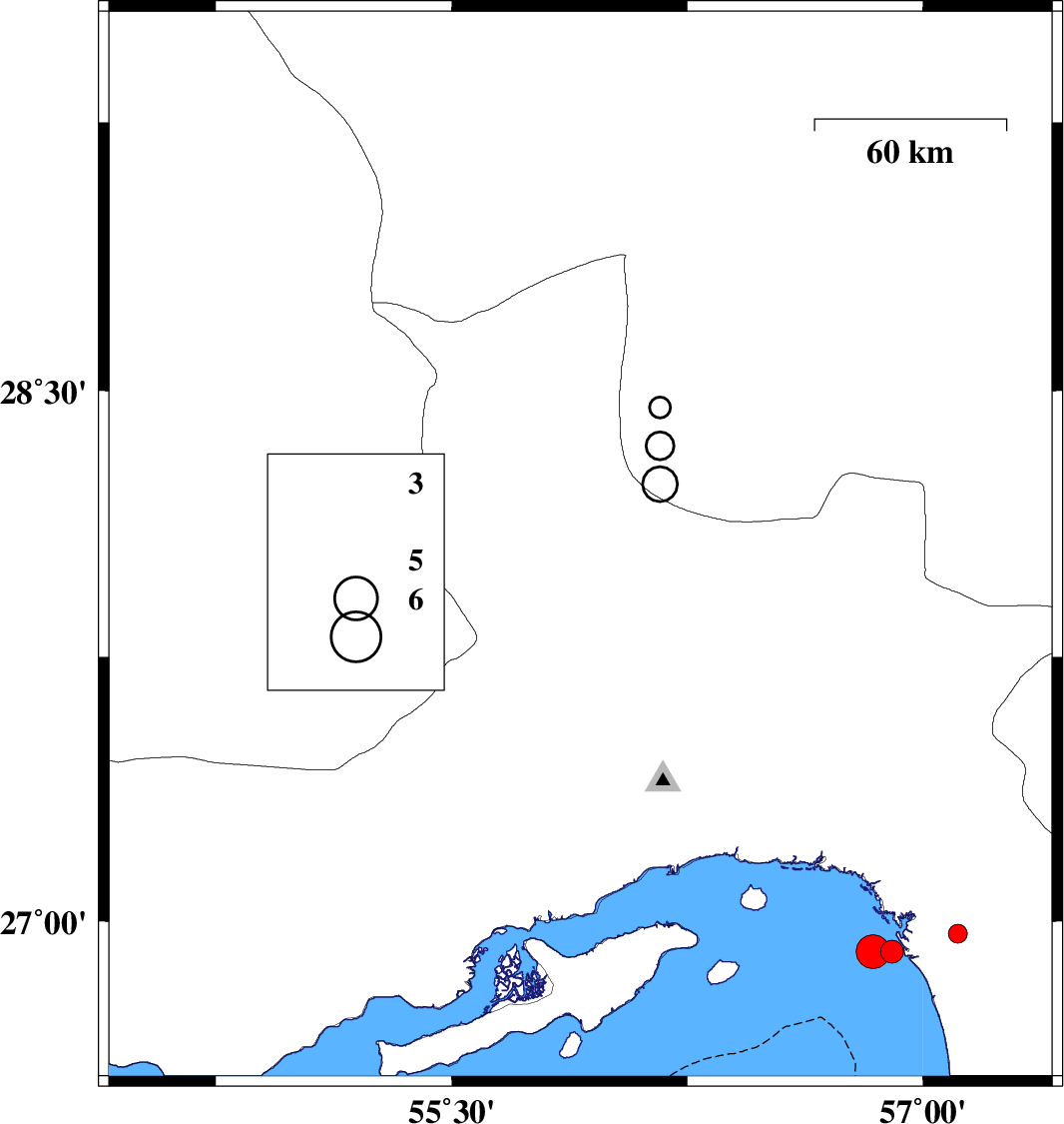 | 2011/08/20 | 04:14:07.7 | 08:44:07.7 | 28.06 | 55.91 | 14 | ML:3.2 | Hormozgan Province, 27 km South of Hajiabad | ||