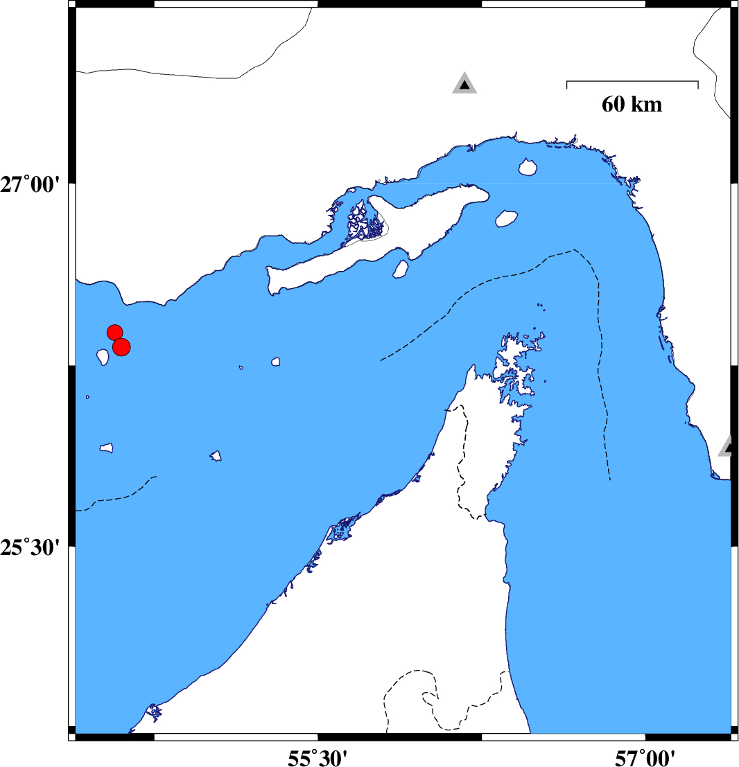 2011/08/20 | 22:40:29.1 | 03:10:29.1 | 26.22 | 55.89 | 33 | ML:3.1 | Persian Gulf, 90 km South-West of Qeshm | ||