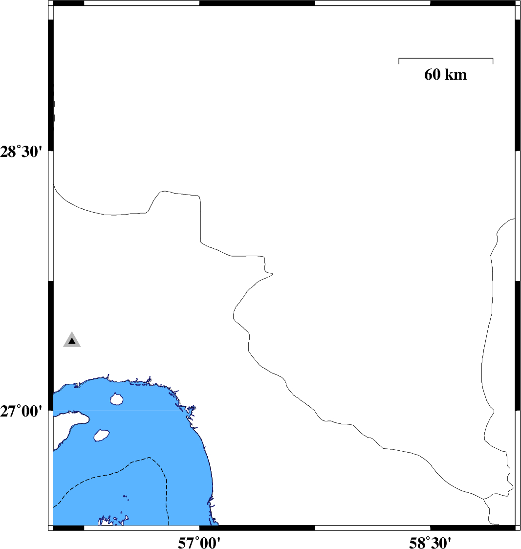 2011/08/21 | 12:52:46.8 | 17:22:46.8 | 27.81 | 57.47 | 14 | ML:3.3 | Kerman Province, 28 km South-West of Kahnuj | ||