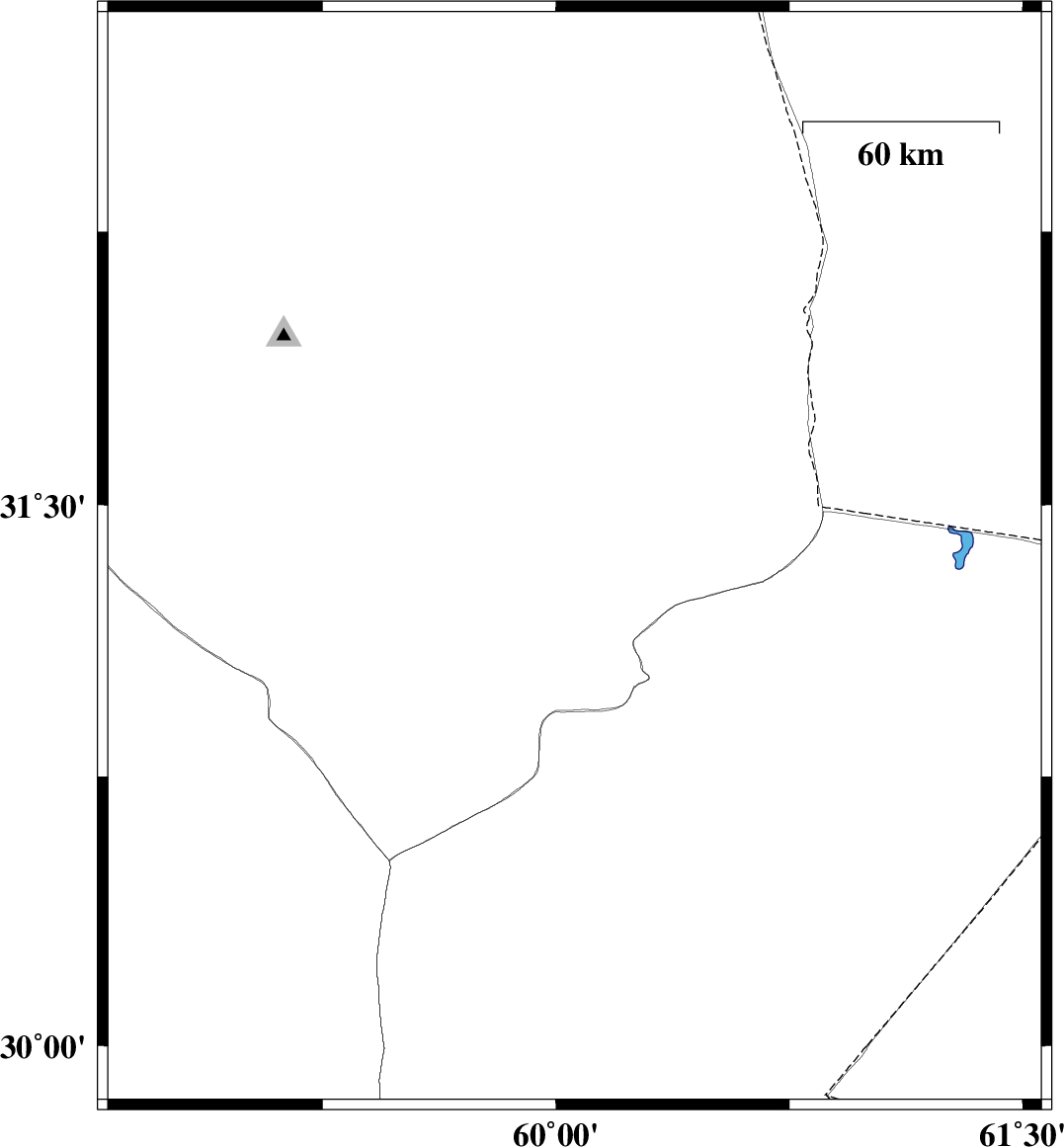 2011/08/22 | 19:23:21.7 | 23:53:21.7 | 31.35 | 60.06 | 18 | ML:3.3 | Khorasan(south) Province, 21 km South of Nehbandan |