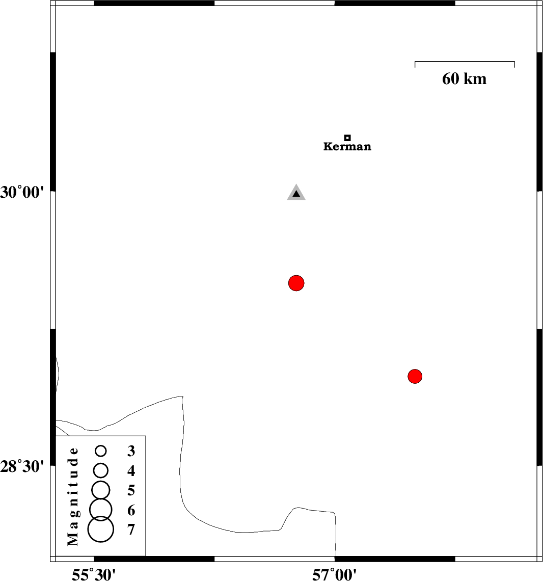2011/09/18 | 02:38:51.3 | 07:08:51.3 | 28.99 | 57.5 | 17 | ML:3.9 | Kerman Province, 43 km North-West of Jiroft |