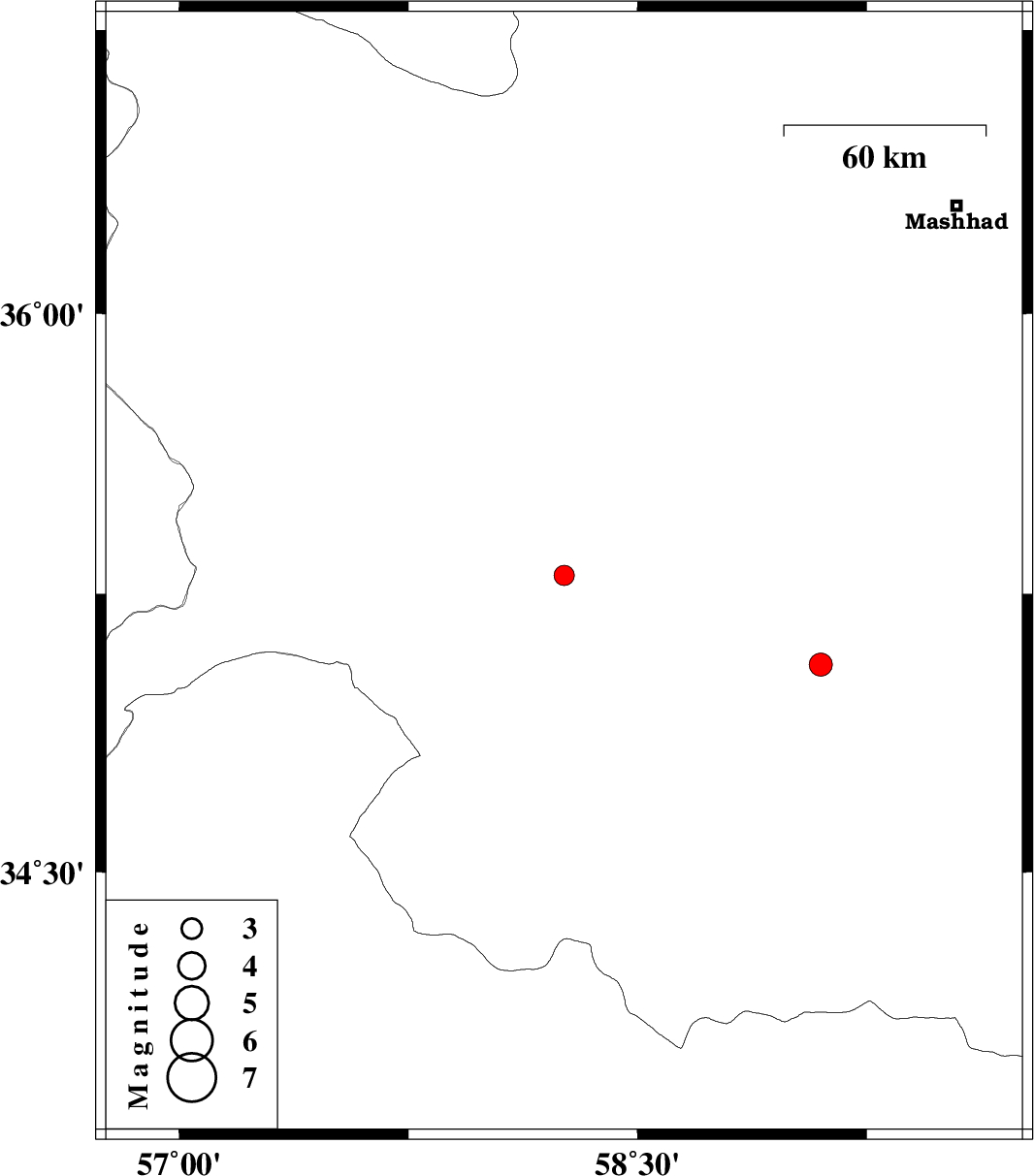 2011/10/01 | 06:25:47.5 | 09:55:47.5 | 35.06 | 59.1 | 14 | ML:3.4 | Khorasan(center) Province, 26 km South-West of Torbat-e heydariyeh |