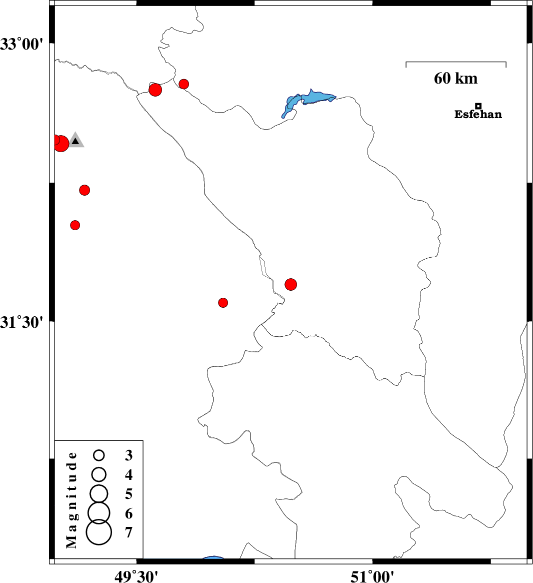 | 2011/10/19 | 16:26:33.0 | 19:56:33.0 | 32.78 | 49.8 | 15 | ML:2.8 | Esfahan Province, 34 km South-West of Fereydunshahr | ||