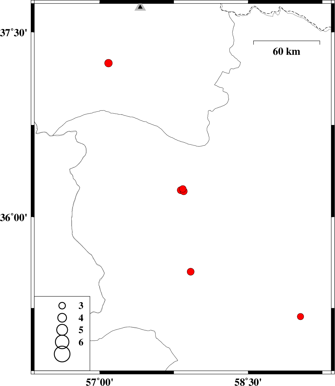 2011/11/07 05:50:45.3 09:20:45.3 37.2557.0914 ML:3.5 Khorasan(north) Province, 36 km South-East of Ashkhaneh