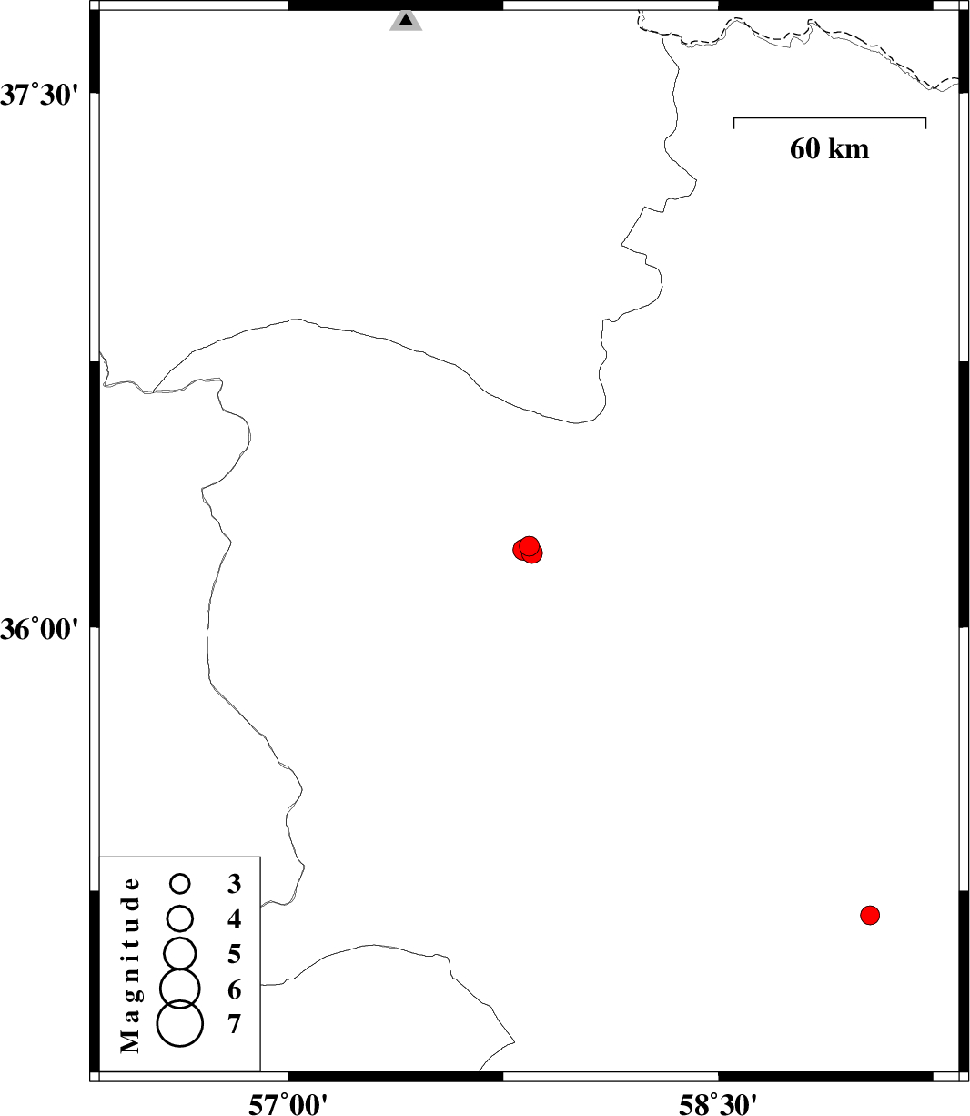 2011/11/30 18:36:31.6 22:06:31.6 36.2257.8214 ML:3.2 Khorasan(center) Province, 13 km East of Sabzevar