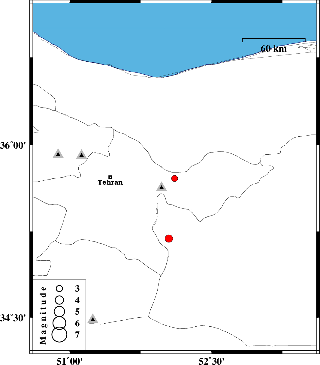 | 2011/12/01 | 07:48:09.8 | 11:18:09.8 | 35.19 | 52.05 | 16 | ML:3.6 | Semnan Province, 26 km West of Garmsar |