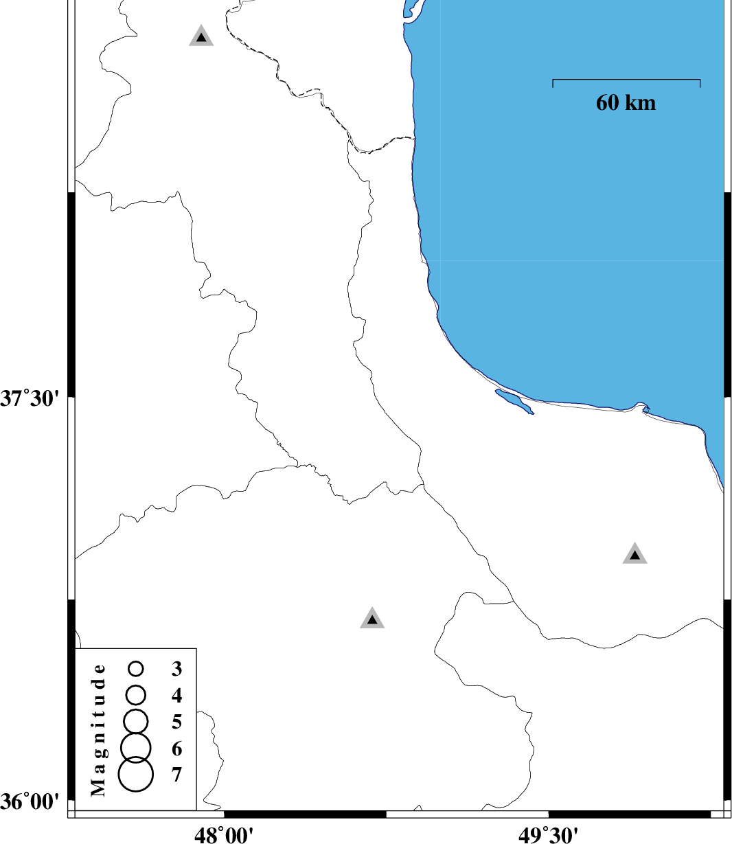 | 2011/12/10 | 03:01:46.5 | 06:31:46.5 | 37.46 | 48.81 | 14 | ML:3.1 | Gilan Province, 32 km West of Masal |