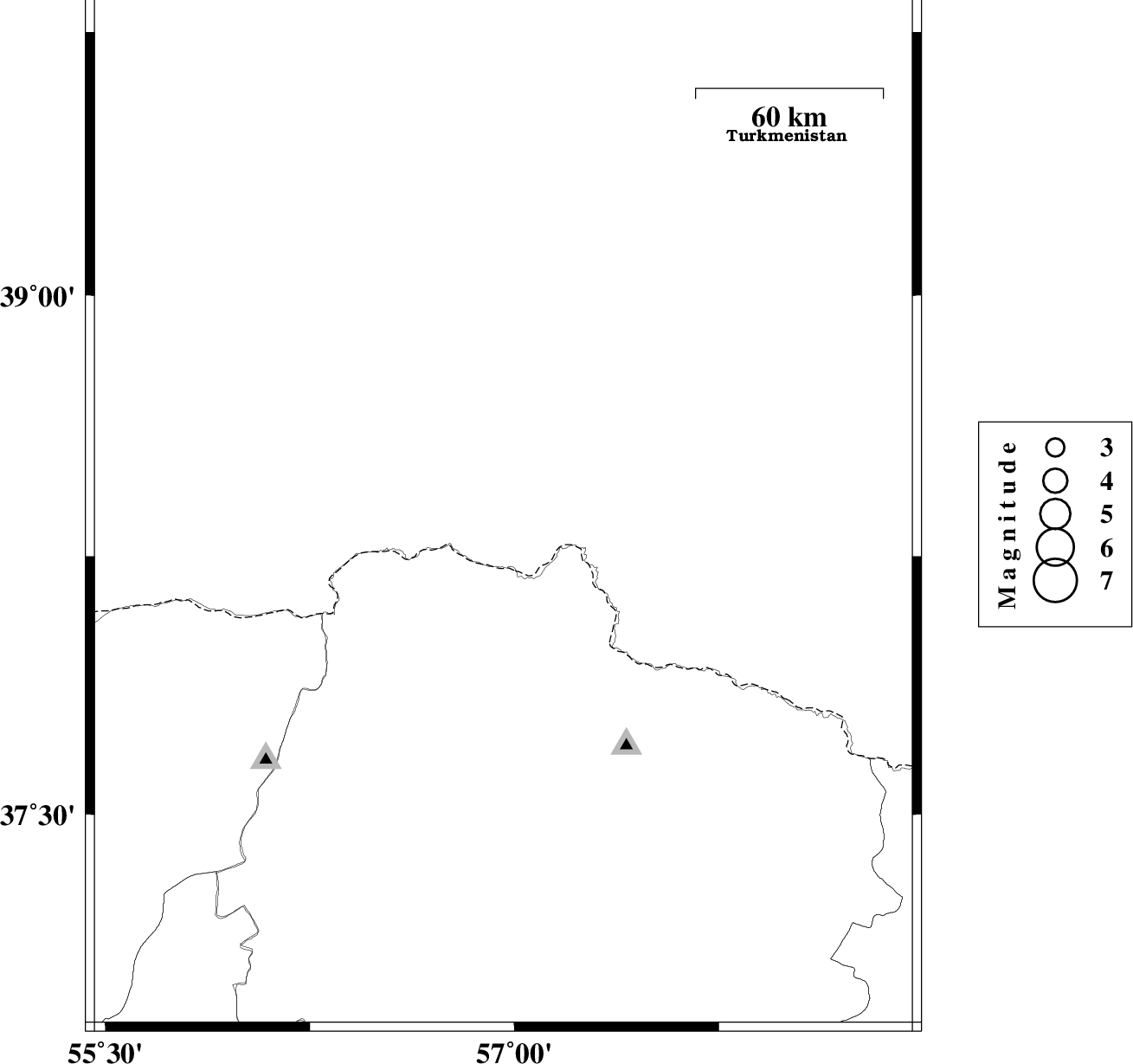 | 2011/12/11 | 04:17:20.9 | 07:47:20.9 | 38.39 | 56.96 | 6 | ML:2.7 | Turkmenistan, 94 km North of Ashkhaneh | ||