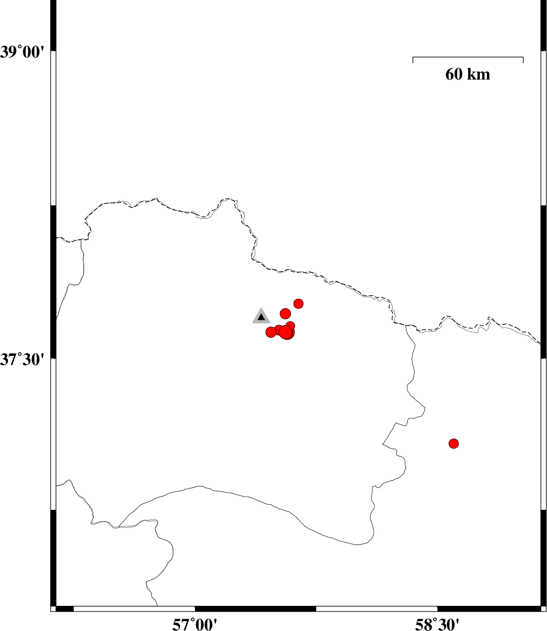 2011/12/26 04:12:00.1 07:42:00.1 37.7257.5617 ML:3 Khorasan(north) Province, 34 km North-East of Bojnurd