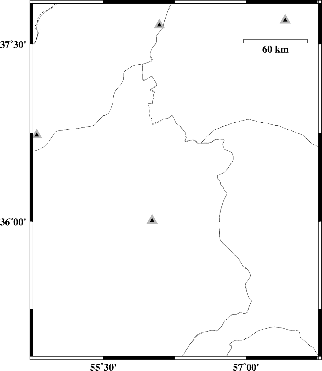 | 2012/01/17 | 09:22:17.8 | 12:52:17.8 | 36.34 | 56.26 | 16 | ML:2.9 | Semnan Province, 69 km South-West of Jajarm | ||