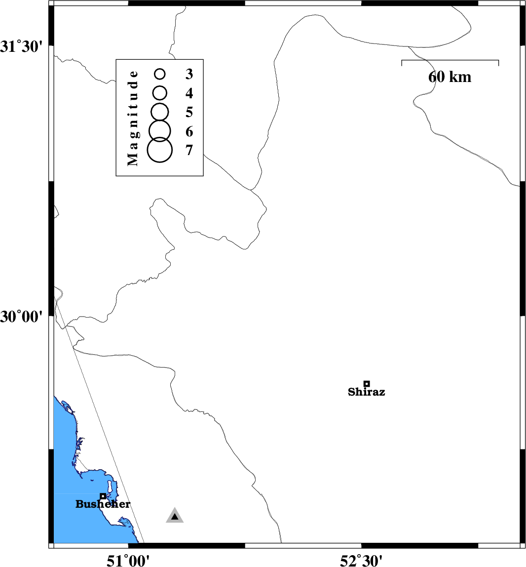 | 2012/01/21 | 18:43:09.3 | 22:13:09.3 | 30.22 | 52.02 | 14 | ML:3.3 | Fars Province, 6 km Ardakan |