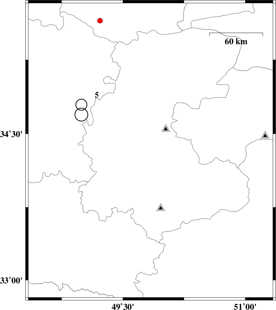 2012/01/31 02:20:23.2 05:50:23.2 34.5151.278 ML:3.4 Qom Province, 39 km South-East of Qom