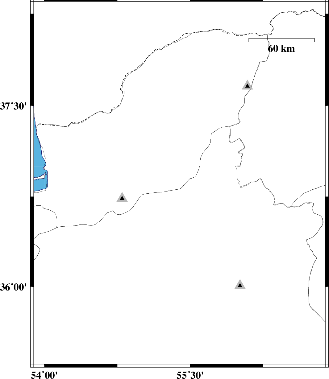 | 2012/02/13 | 15:09:44.6 | 18:39:44.6 | 36.85 | 55.39 | 14 | ML:3.5 | Golestan Province, 42 km South of Minodasht |