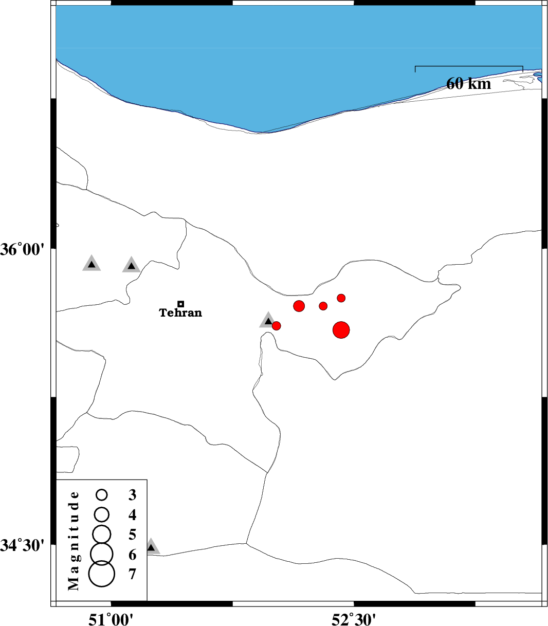 | 2012/02/10 | 08:59:40.0 | 12:29:40.0 | 35.59 | 52.42 | 14 | ML:4.6 | Tehran Province, 42 km North of Garmsar | download | |