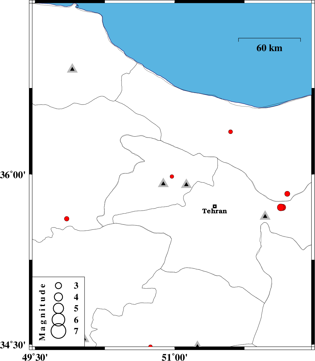 | 2012/02/21 | 01:10:29.5 | 04:40:29.5 | 35.98 | 50.97 | 16 | ML:1.8 | Tehran Province, 20 km North of Karaj | ||