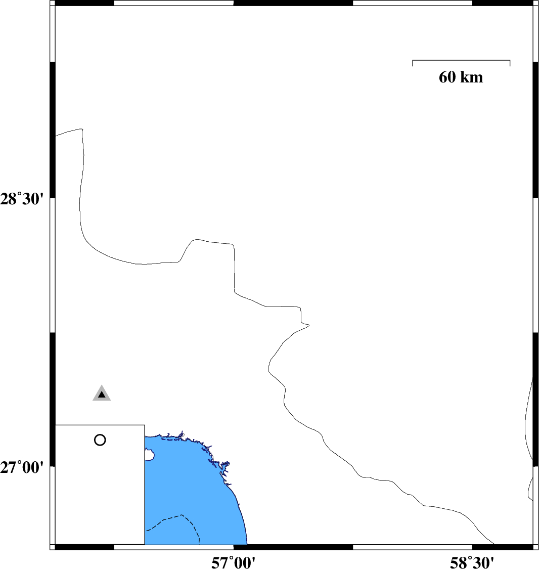 | 2012/02/28 | 18:51:06.6 | 22:21:06.6 | 28.06 | 57.38 | 14 | ML:3.8 | Kerman Province, 33 km North-West of Kahnuj |